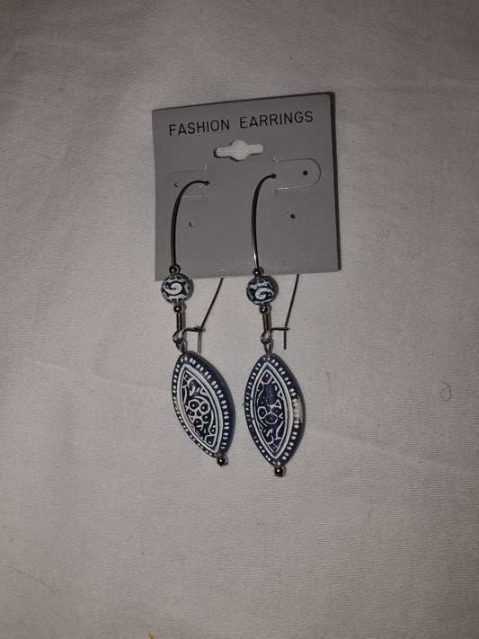 Bohemian Silver & Blue/White Enamel Drop Earrings