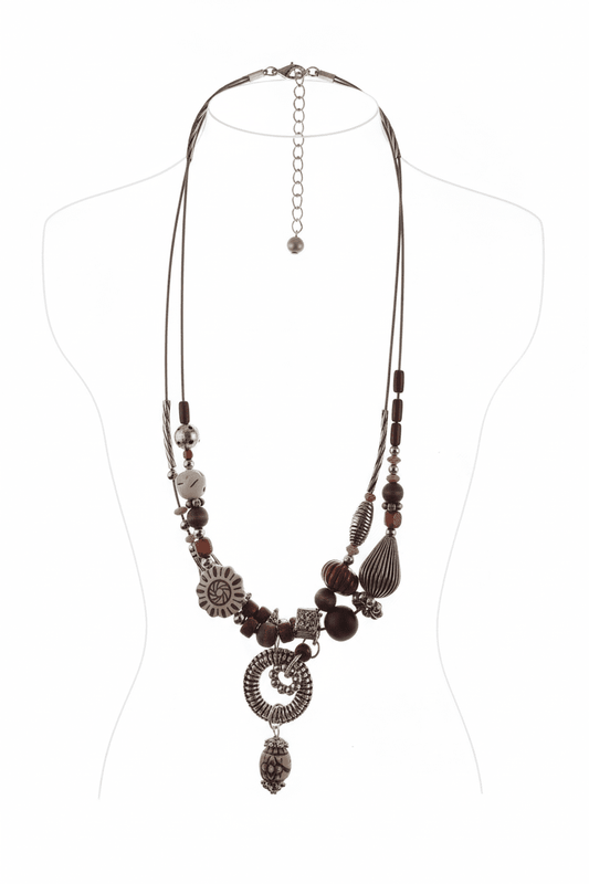 Bohemian Multi-Strand Mixed Bead Statement Necklace with Carved Pendant