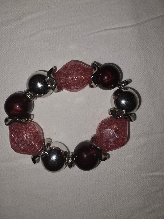 Bold Red & Silver Chunky Bead Stretch Bracelet
