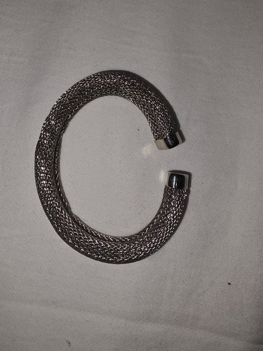 Chunky Mesh Cuff Bracelet | Gunmetal Tone Woven Wire Open Bangle | Modernist Statement Jewelry