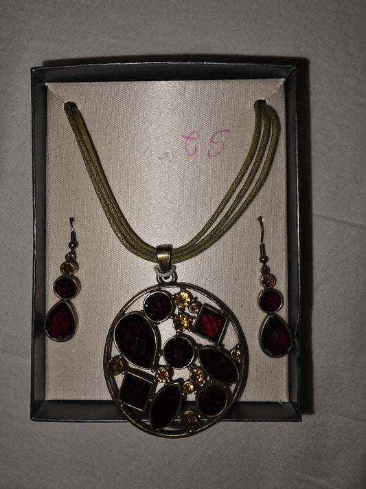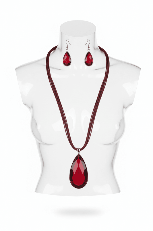 Classic Red Crystal Teardrop Necklace & Earring Set with Silver-Tone Accent
