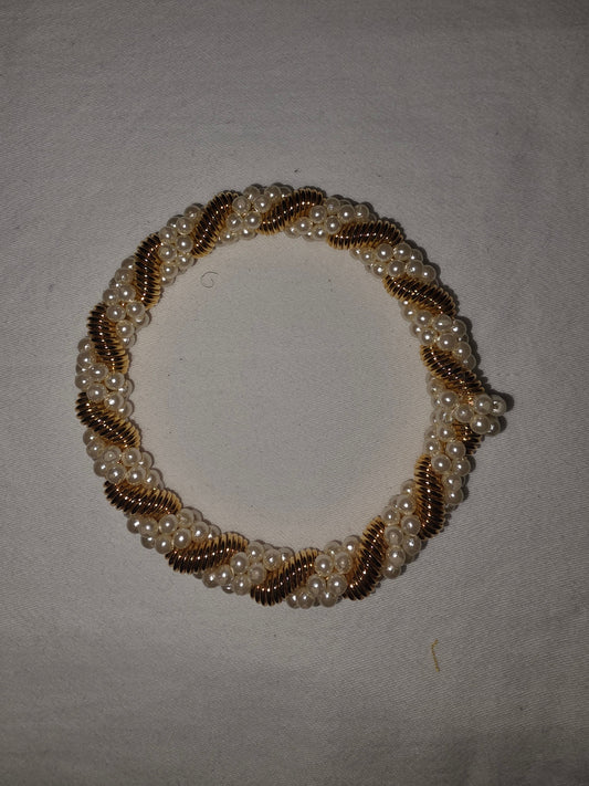 Elegant Faux Pearl and Gold-Tone Coiled Wire Bracelet