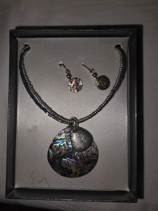 Boho Amber Colored Resin Ring Pendant Necklace & Earring Set