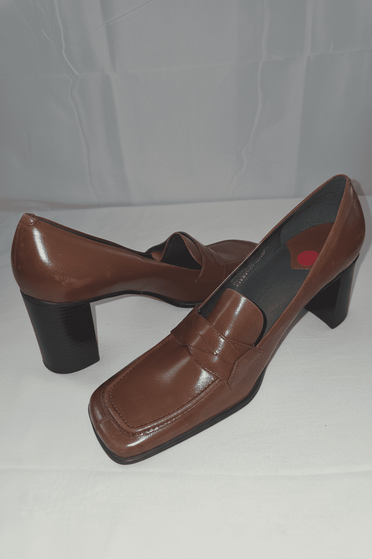 Nine West Vintage Brown Leather Heeled Penny Loafers Size 10