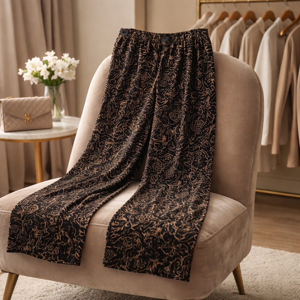 Step into effortless elegance with these A.K.F. New York pants, where comfort meets high-style design. The flowing, wide-leg silhouette creates a dramatic drape, while the detailed linework of the print adds a touch of modern artistry to a classic cut. Perfectly balanced for both professional settings and elevated evening wear, these pants transition seamlessly through the seasons.