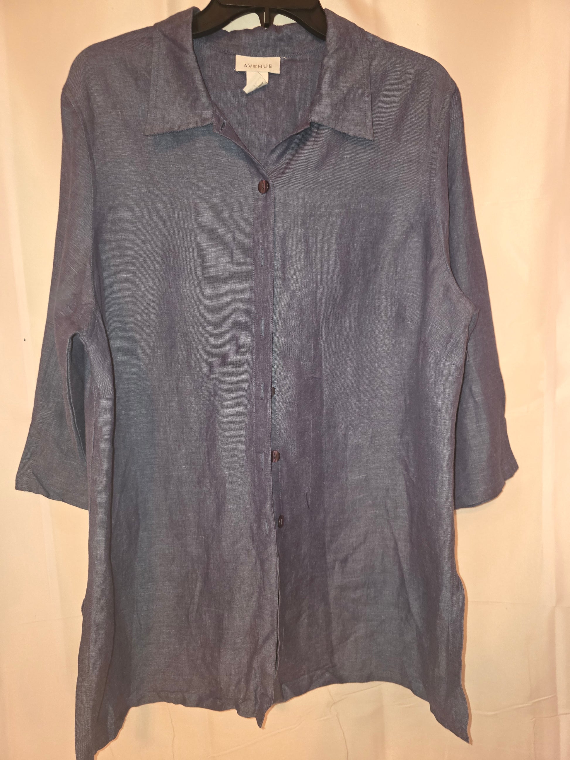 Avenue The "Azure Ease" Linen Blend Tunic Shirt Size 18/20