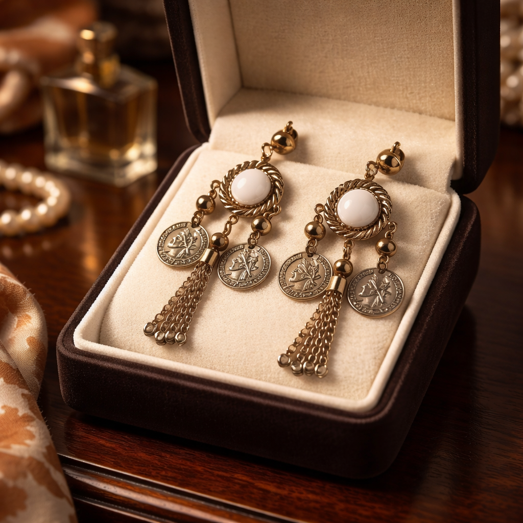 The "Aurelia" Collection: Roman Coin & Tassel Drop Earrings